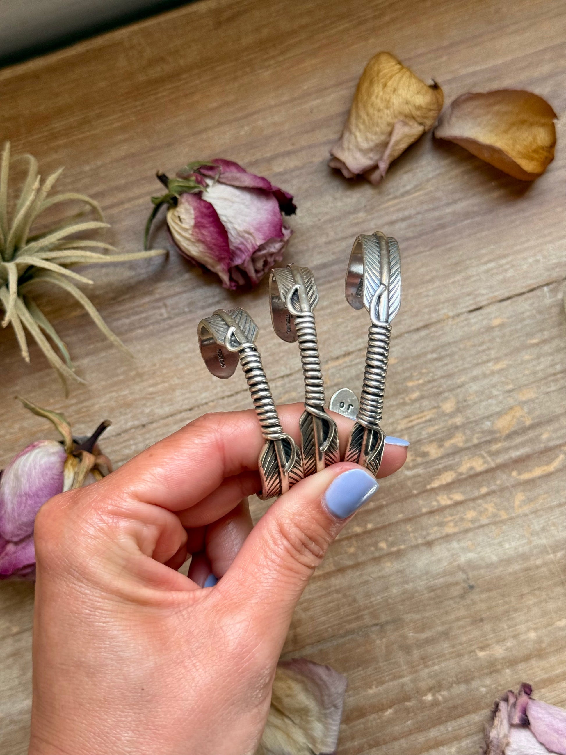 This Sterling Silver Hudson Feather Cuff is a striking, collectible piece handcrafted in the USA by artist Jason Ogg.