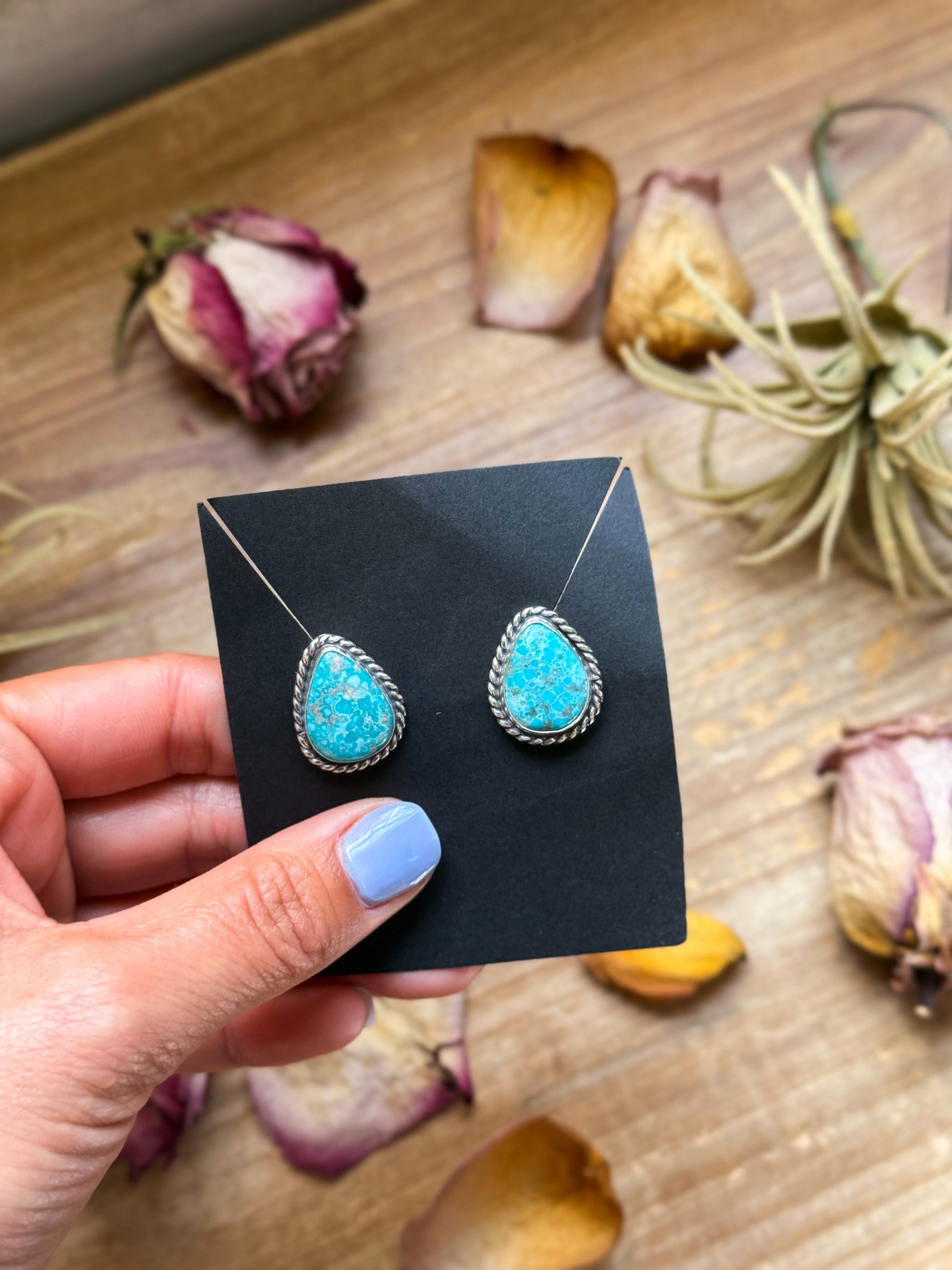 Sterling Silver Whitewater Turquoise Stud Earrings – Handmade by Artist Jason Ogg