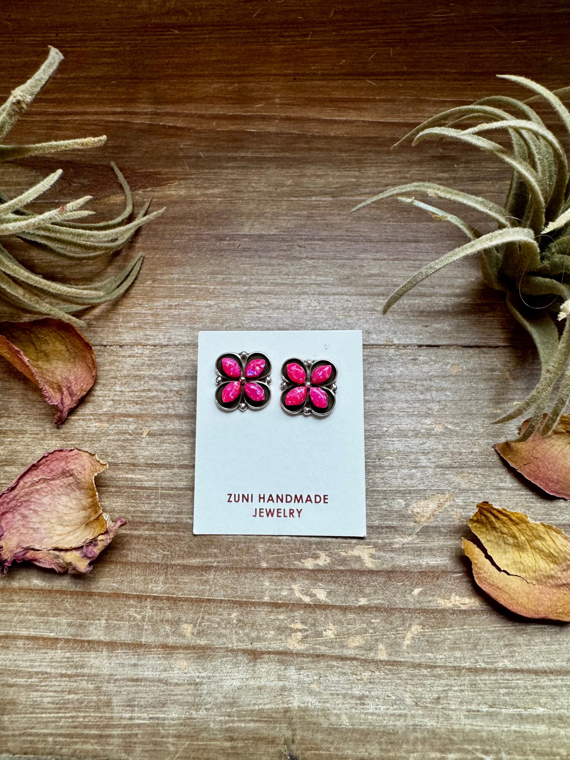 Zuni Stud Earrings – Pink Opal & Sterling Silver